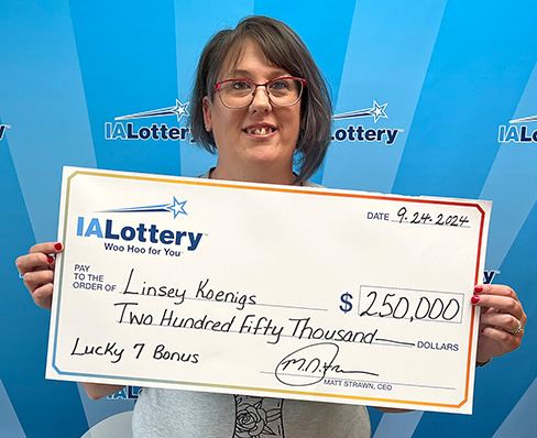39-year-old Linsey Koenigs will split the prize from the Lucky 7 Bonus game with two family members. Iowa Lottery officials say that Koenigs’ father-in-law purchased the winning ticket at the Kum & Go at 818 Highway 105 in Northwood, with the Koenigs claiming the prize on Tuesday at the lottery’s Mason City office.