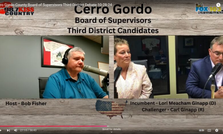 MASON CITY — The Third District candidates for the Cerro Gordo County Board of Supervisors met for a candidate program last night that was live-streamed on our news website, northiowanow.com. Incumbent Democrat Lori Meacham Ginapp is being challenged by Republican Carl Ginapp.