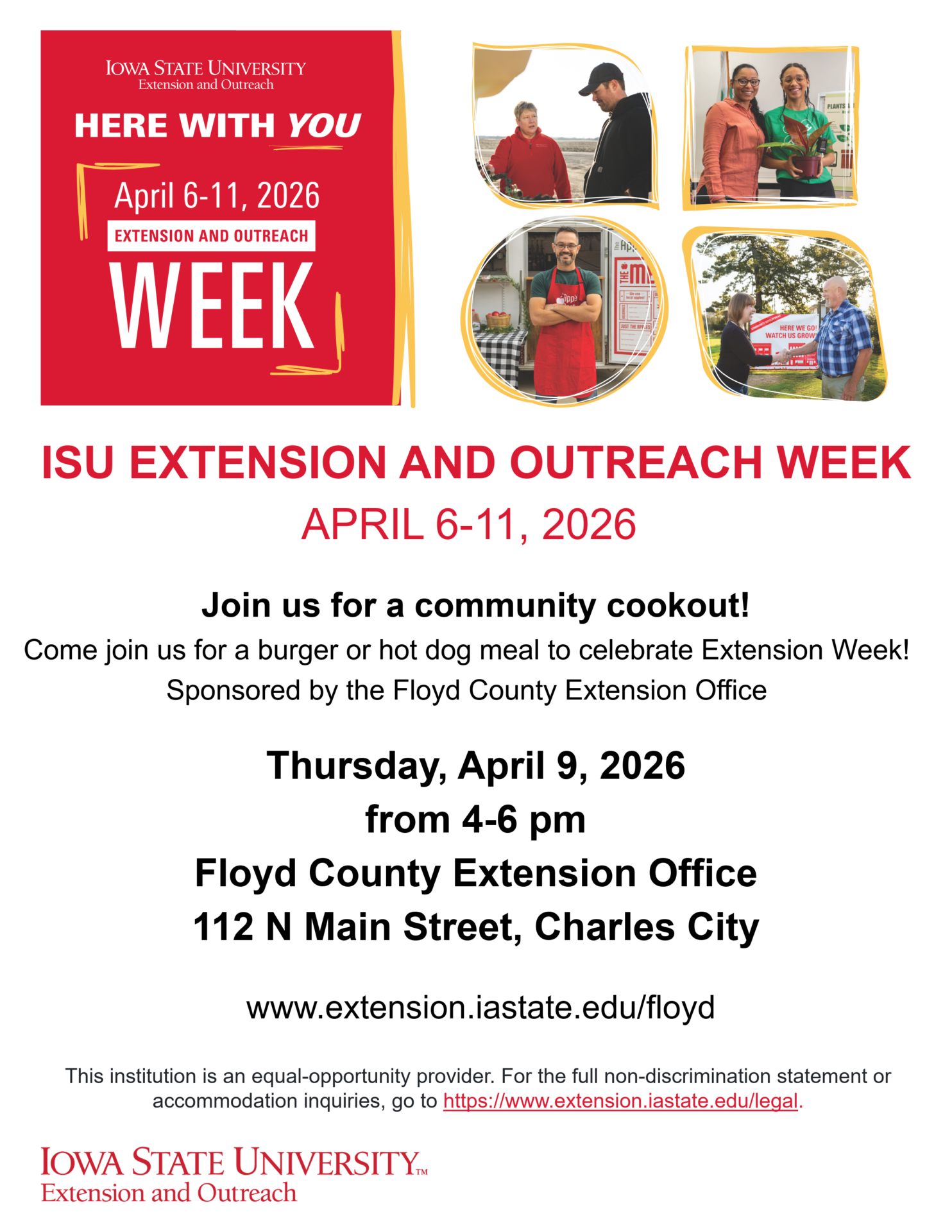 ISU Extension and Outreach Week is coming up April 6–11, 2026, and Floyd County will celebrate with a community cookout and several events highlighting local Extension programs. KCHA’s Chris Berg spoke with Dr. Jason Henderson, Vice President for Iowa State University Extension and Outreach, about how Extension connects research from Iowa State to communities across all 99 counties and supports innovation in agriculture and food systems. Chris was also joined in studio by Floyd County Extension Council member Jacie Peichel, who shared details about the Extension Week Community Cookout, planned for Thursday, April 9 from 4–6 pm at the Floyd County Extension Office in Charles City. The event will feature burgers and hot dogs grilled by the Floyd County Cattlemen and is open to everyone.