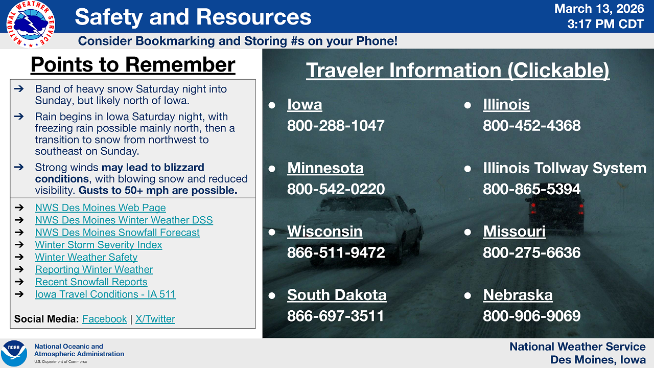According to the National Weather Service briefing issued Friday afternoon, rain is expected to begin across much of Iowa Saturday night before transitioning to a wintry mix and eventually snow from northwest to southeast on Sunday as temperatures drop. A brief period of freezing rain is possible Sunday morning, mainly across northern Iowa.