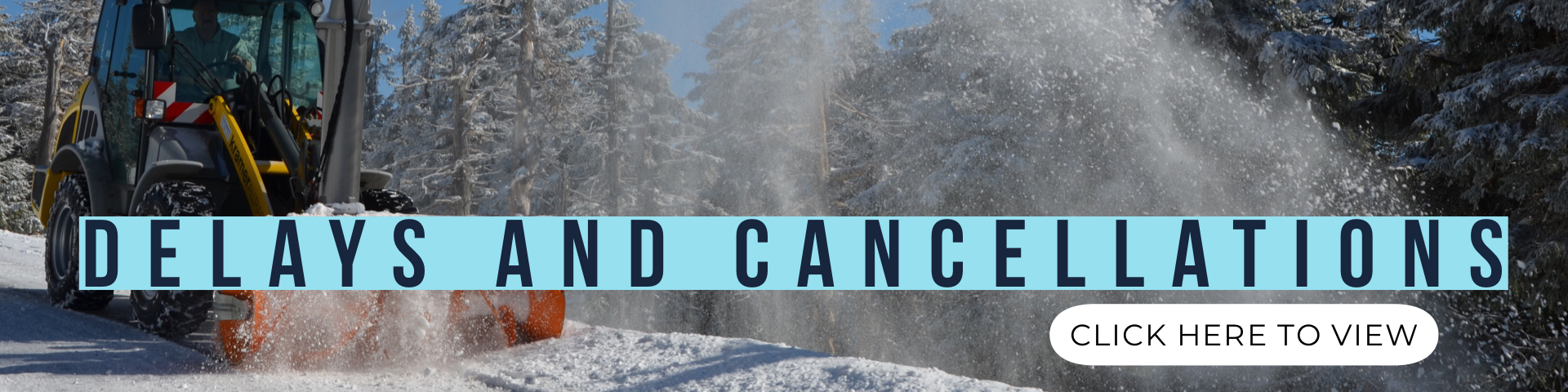 Home/Delays/Cancellations Delays/Cancellations Brought to you by: UPDATED: Saturday December 6 at 5:15 AM ANNOUNCEMENTS: All Categories All Statuses